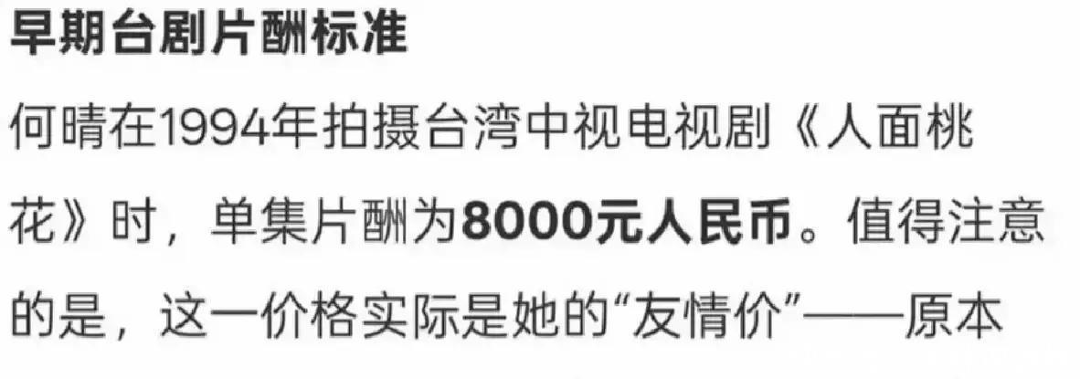 当年拍《西游记》,剧组整体预算有限,据公开资料,她每集片酬只有六十元。那是八十年代,数额放在当时不算低,但和后来动辄天价片酬的时代不可同日而语。等到《三国演义》,单集报酬涨到两百二十五元左右,总体收入有抬升,却仍属于“温饱型”。真正撑起收入的,是后来在台湾地区的戏。凭借在大陆观众心中的口碑,她被不少当地编剧、导演看中,其中最认可她的是琼瑶。陆续演了多部作品,每集报价大约一万,对当时的电视圈来说已经是高位档。