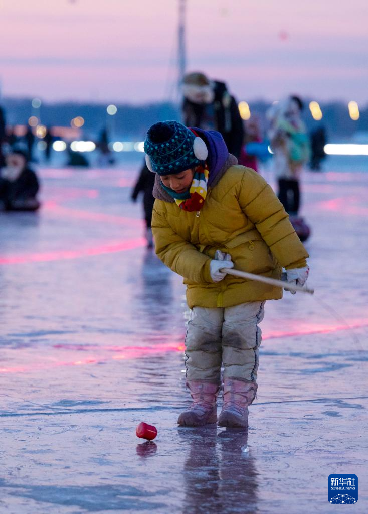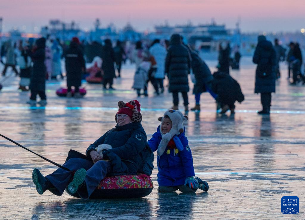 1日,人们在第八届哈尔滨松花江冰雪嘉年华园区内体验冰上娱乐项目。新华社记者 张涛 摄